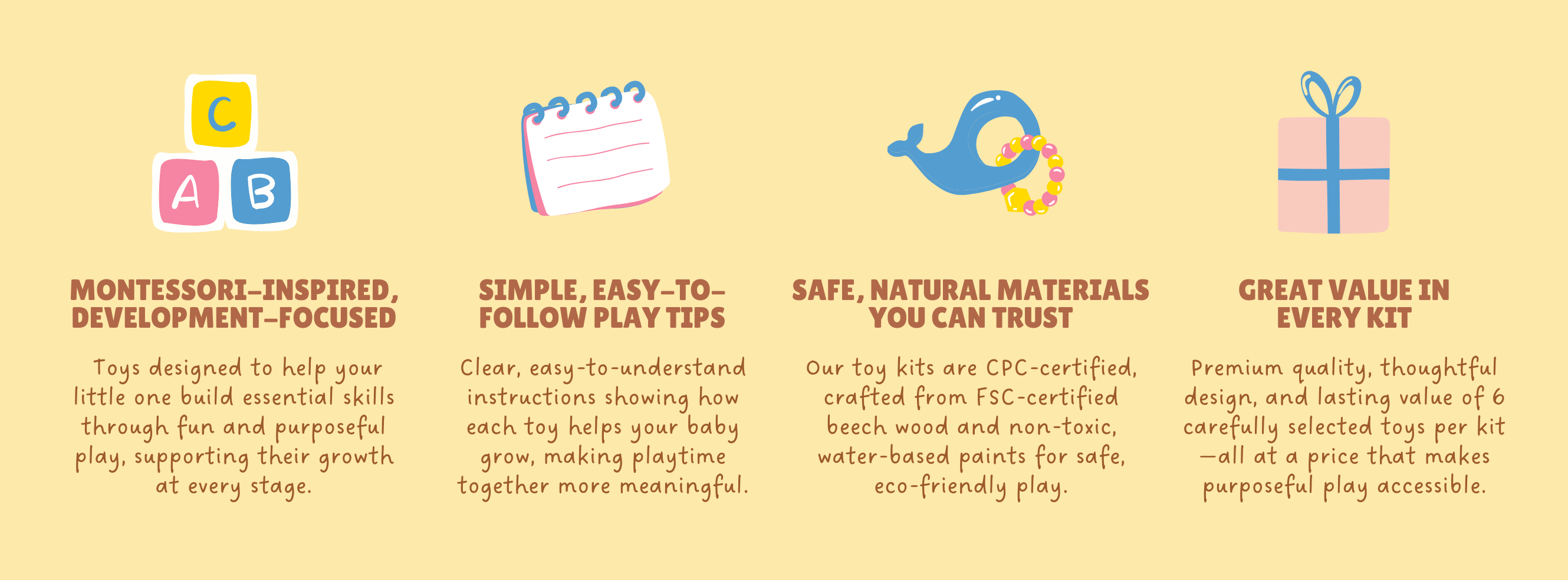 "I love the mix of sensory stimulation and motor skills development that’s built into each kit. It’s refreshing to know the products are safe and made with high-quality materials, yet affordable!"